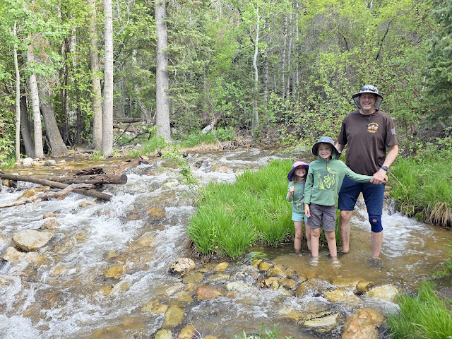 Deana, Avery, Gavin and Ariana with the Keeper of the Plains statue in the background.
